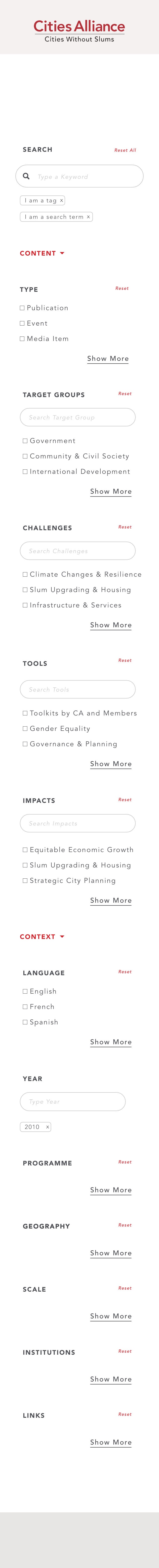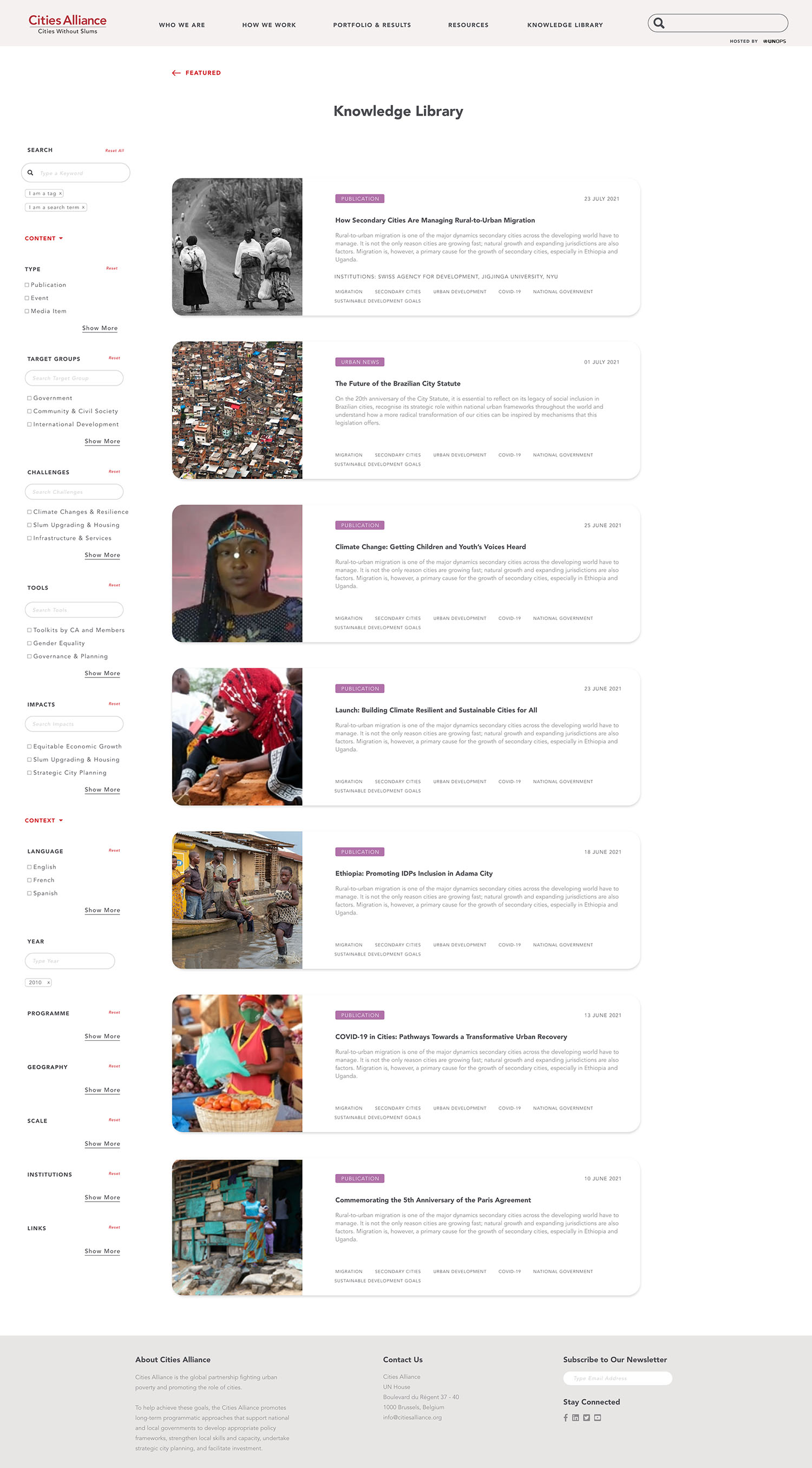 Cities Alliances set a goal to relaunch this knowledge library with increased accessibility and improved filtering options for search results. Users of the existing library had difficulty finding it, using the navigation, and staying within the flow of their research.