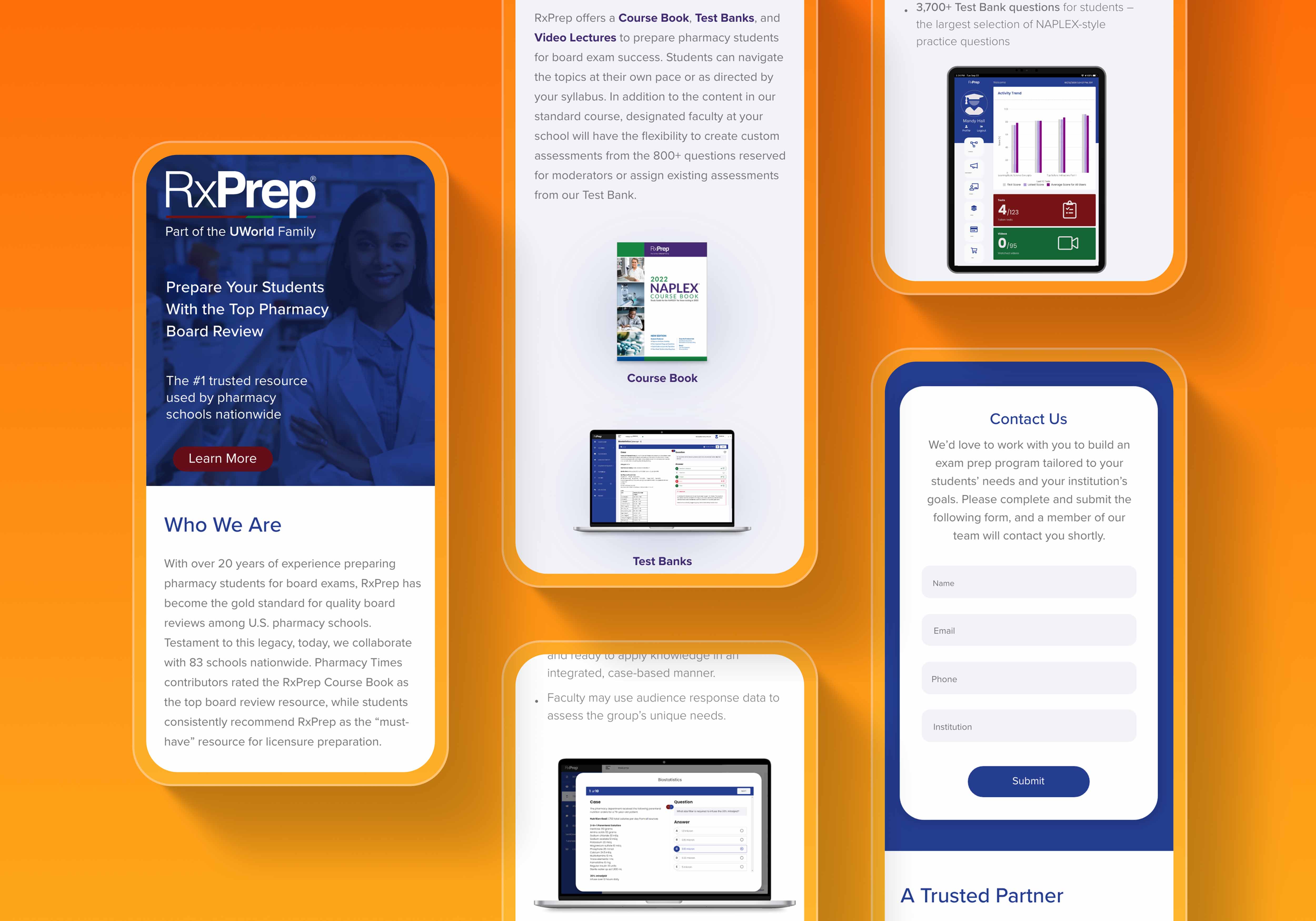 UWorld offers customizable learning tools for exams and teaching tools for educators. In both print and digital form, I was commissioned to improve the user experience of the website and assist with marketing their products. This included flyers, banners, web pages, guides, blogs, paid social media advertisement, emails and brochures.